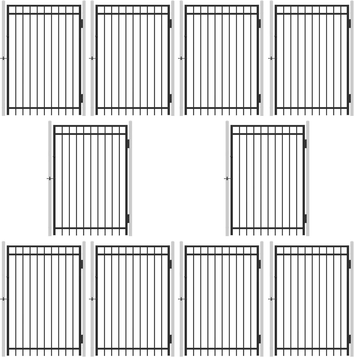 Fencer Wire Pack of 10 Heavy Duty Flat Top Fence Gate, 6FT Height x 4FT Width Outdoor Fence Gate, Anti-Rust Steel Gate for Fencing Barrier, Decorative Garden Gate for Residential, Yard, Pool, Patio