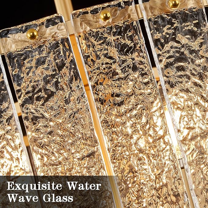 Modern Glass Chandelier Gold Drum Chandelier Light Fixture Round 24in Dining Room Chandelier Lighting 8 Light Ripple Glass Chandelier for Living Room Bedroom Entry Foyer