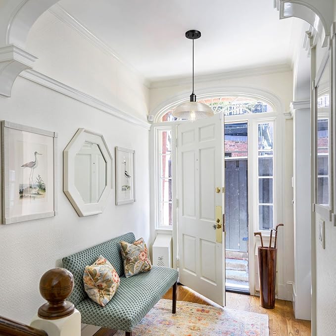 Glass Pendant Light Fixtures - Vintage Pendant Lights Kitchen Island, Hanging Light Fixture for Dining Room, Small Pendant Light for Bedrooms, Black Pendant Lights for Bathroom