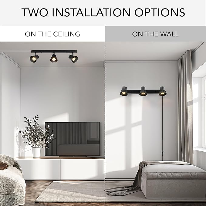 - VERSATILE PLUG-IN DESIGN: the unique plug-in design provides complete installation versatility for your track lighting – place it on your wall or ceiling for ideal lighting in any space