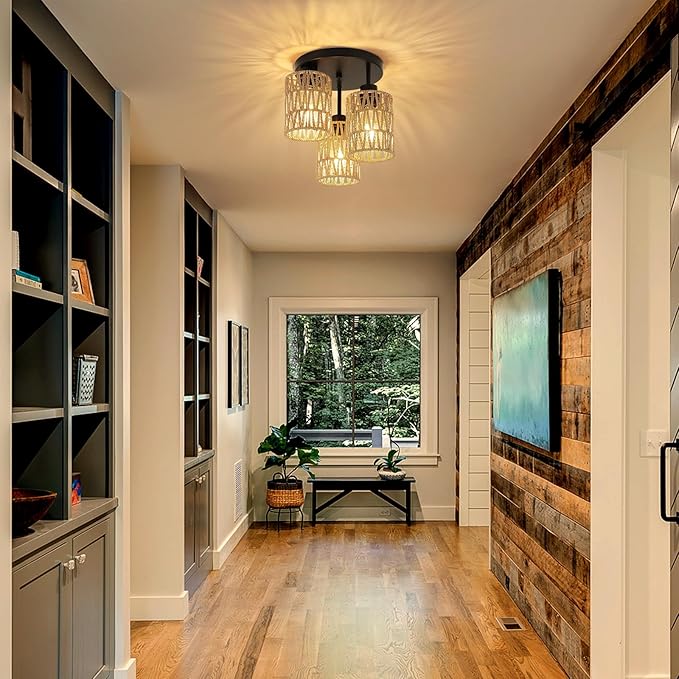 - Easy to Install: Semi flush mount ceiling light fixture whole light packaging. You just need to easily install the lampshade and lamp base. Hallway light fixture with installation manual, you will save your time and be happy to enjoy your new decoration