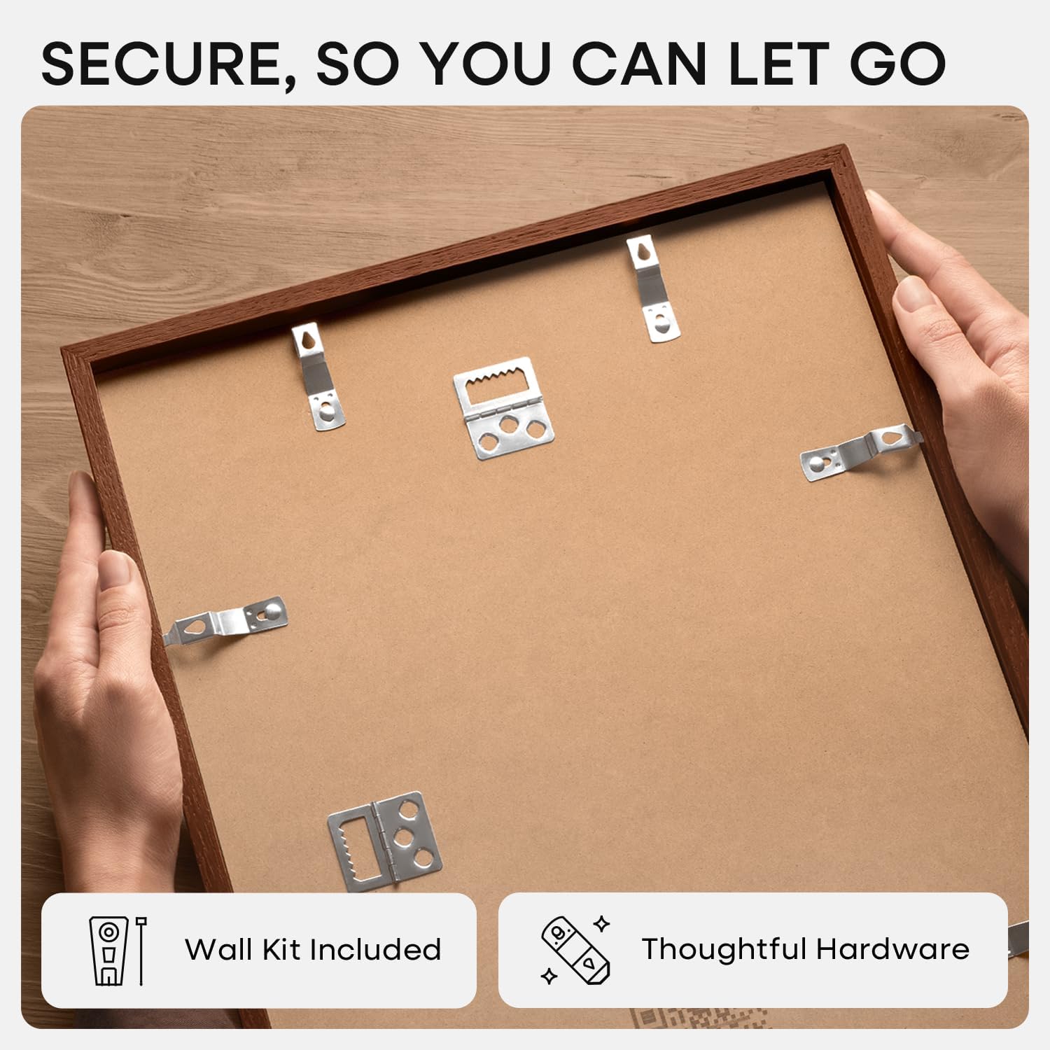 Homeforia 24x24 Picture Frame Brown, High End Dark Oak 24 x 24 Square Wood Frame with Mat 20 x 20 for Photo, 24by24 Wooden Walnut Poster Frame Matted to 20x20 Print, Tempered Glass, Wall Kit, Set of 1