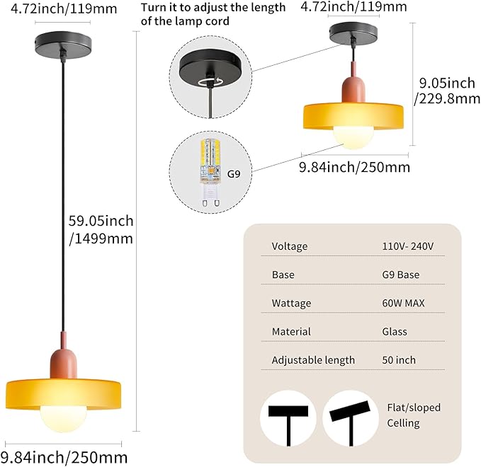 - 💡【Bulb specifications】: Our pendant lights are compatible with G9 light bulb. You can choose different style bulbs and color temperatures to create different and unique atmospheres for your home.