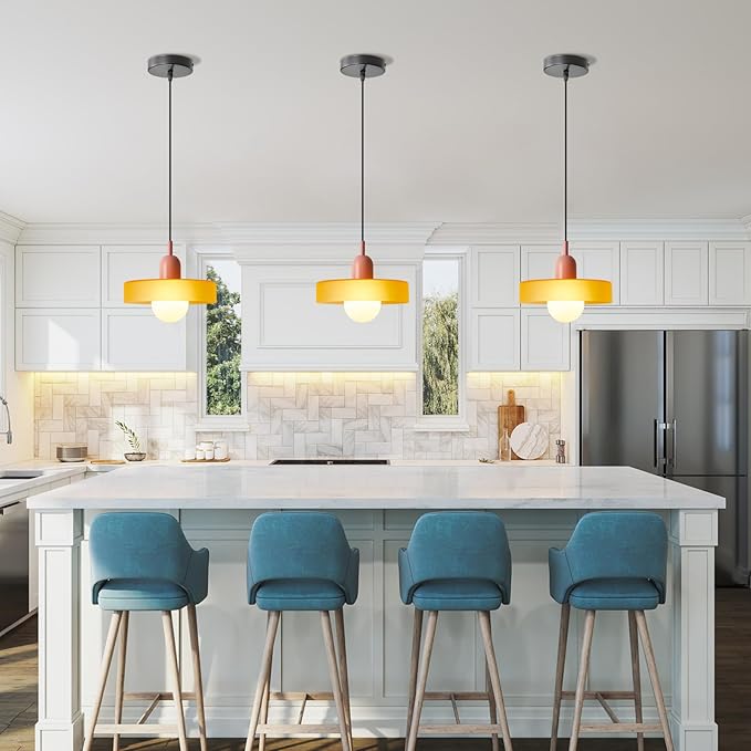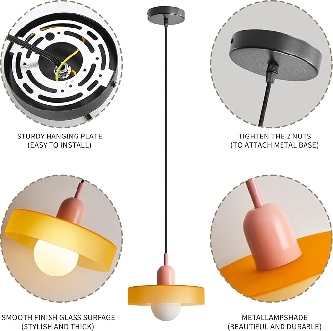 - 💡【Mid-Century Modern Style】:The vintage pendant light made from metal and glass. Chic contrast color design make the pendant light simple and retro.A perfect blend of mid-century and modernity.