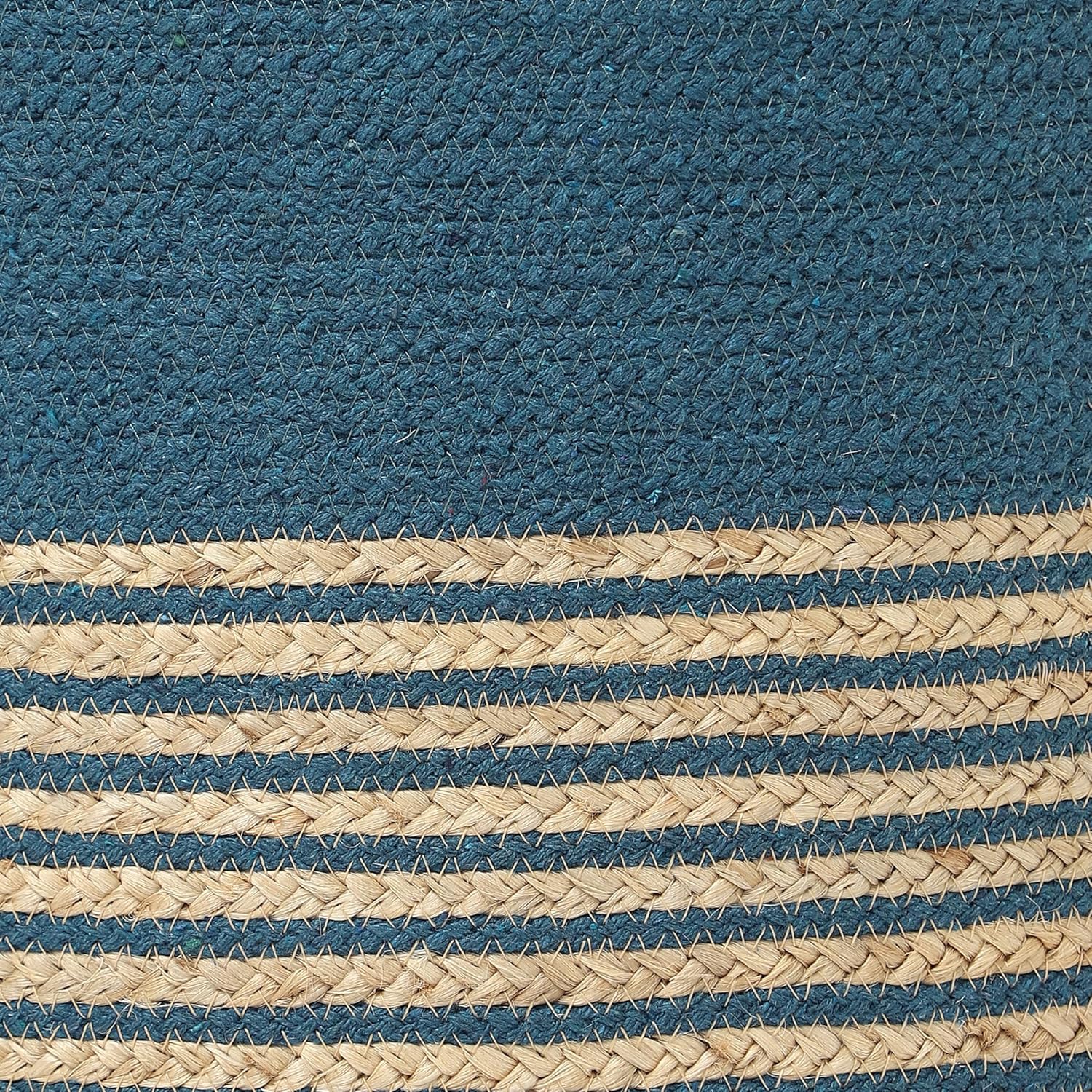 REDEARTH · Cylindrical Pouf Foot Stool Ottoman - Jute Braided Pouffe Poof Accent Sitting Footrest for Living Room, Bedroom, Nursery, Patio, Lounge & Other Rooms (Teal Natural, 18"x18"x14")