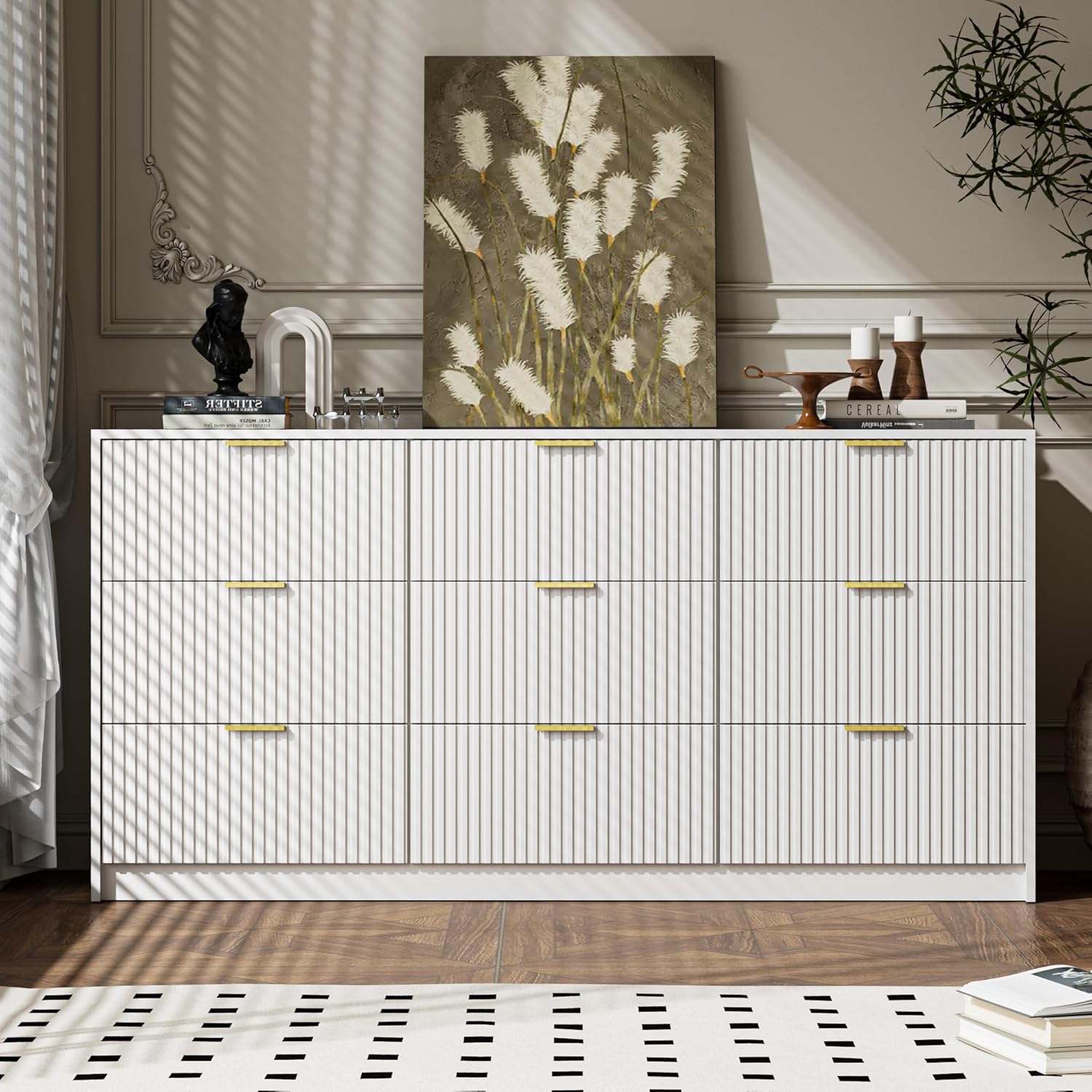 - Modern Minimalist Style: Featuring a fluted drawer panel design, this sleek white dresser exemplifies minimalist elegance. Its exquisite craftsmanship enhances the beauty of any space, creating a clean and tidy atmosphere. If you seek a dresser that adds both character and style to your room, this is the piece to get.