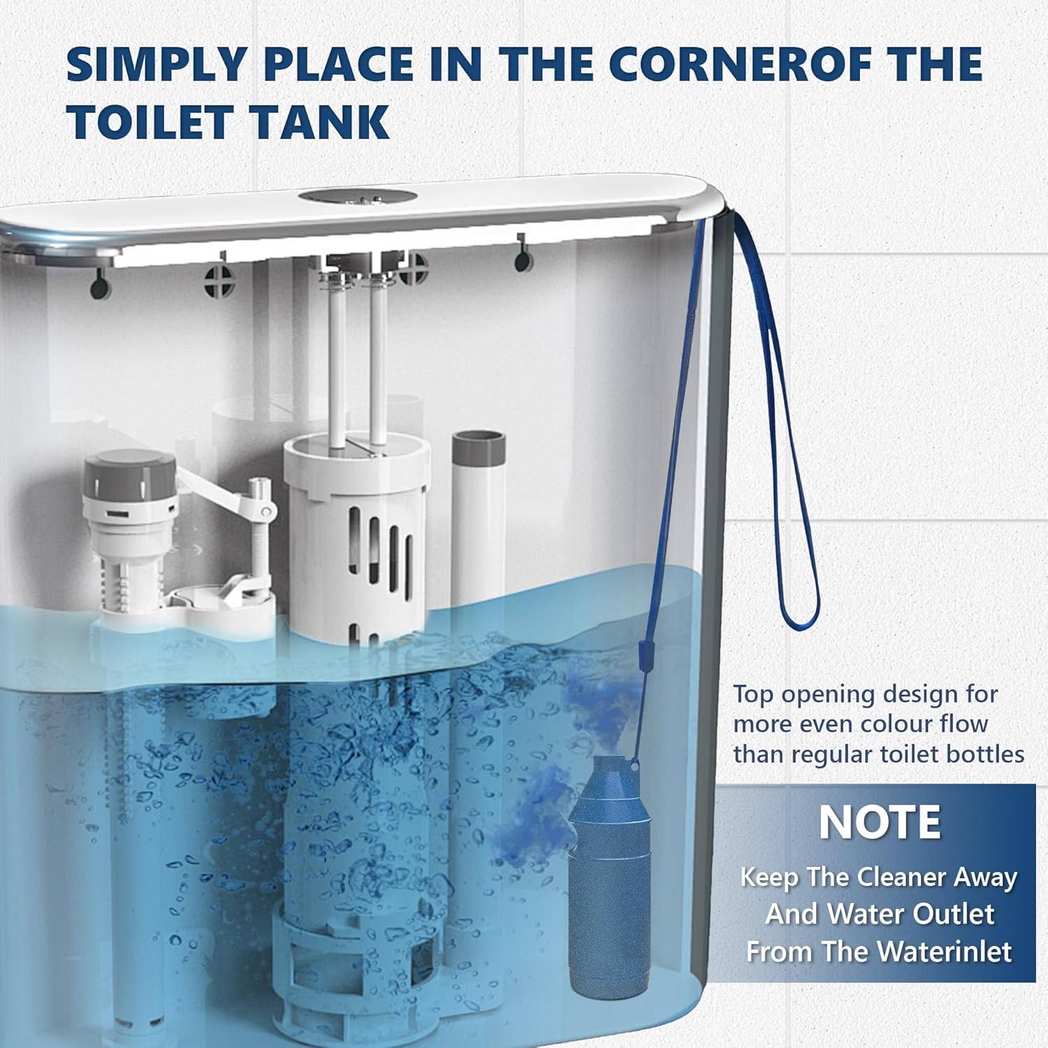 - Easy to Use: Say goodbye to complicated cleaning methods, simply open the package and drop the toilet bowl cleaner into your toilet tank. We have also equipped our toilet cleaner with a dedicated rope to avoid hassle when replacing the product;