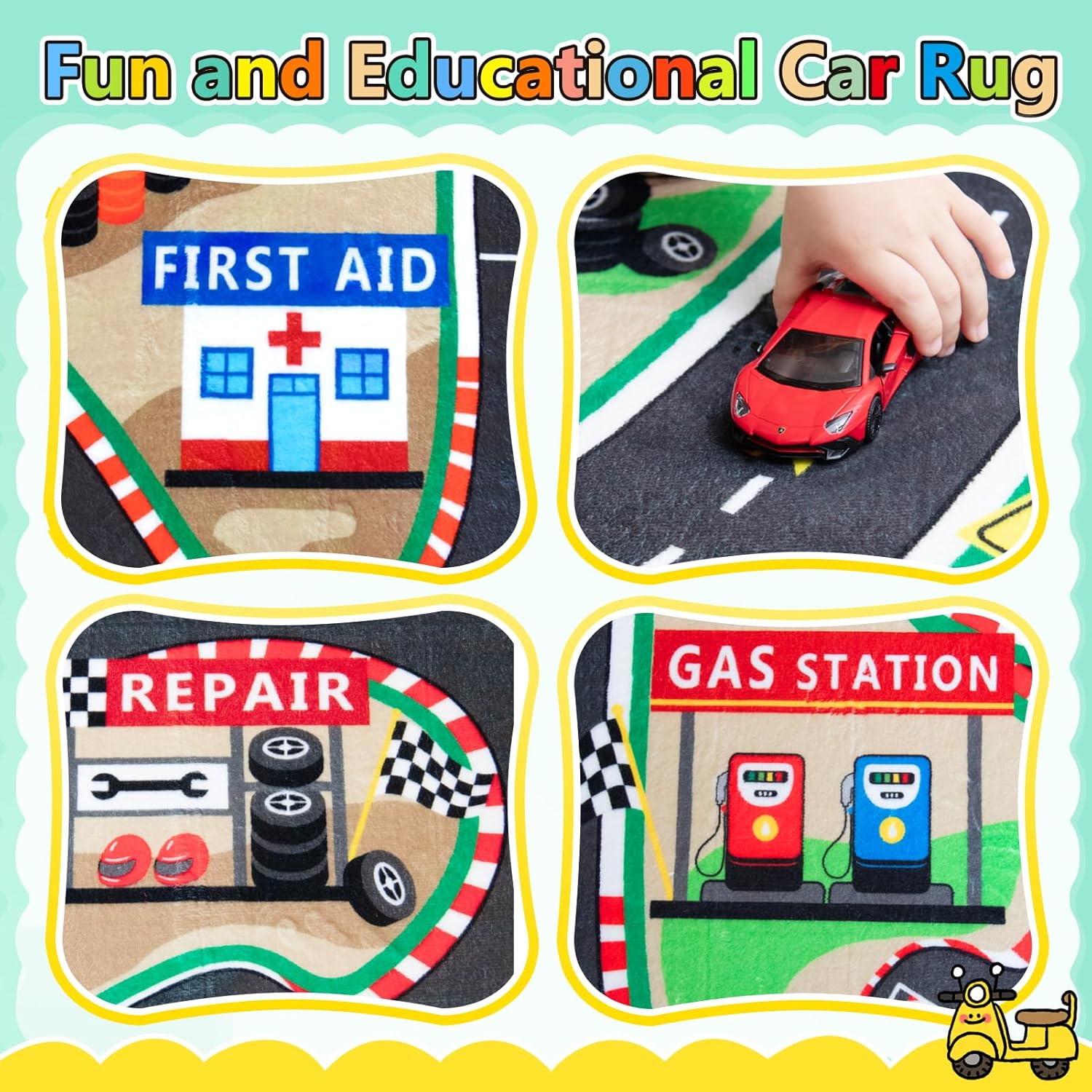 - [Upgraded Material]: Our kids playmat rug is made of premium flannel, and high-resilience sponge, equipped with non-slip backing. The road rug for kids is designed to provide extra cushioning and comfort, protecting babies from bumps and knocks while crawling