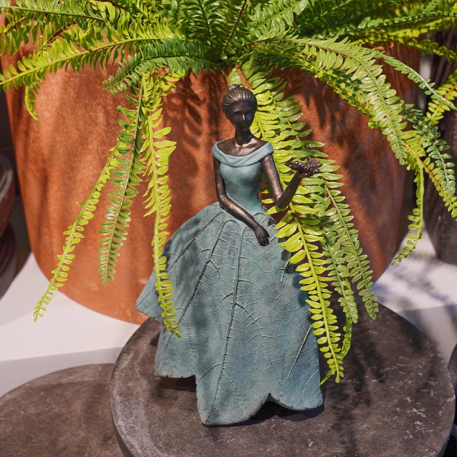 - Fairy Statue: Do you think your garden is too drab? Our leaf Angel girl statue product is originally designed by the designer. The skirt is in the shape of a leaf with the delicate texture of a leaf, which looks very artistic. It can add a different aesthetic feeling to your room or garden.