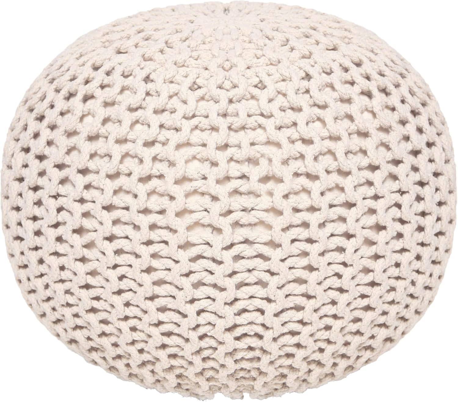 - MAKES A LOVELY, THOUGHTFUL GIFT IDEA: Our knit braided accent cord pouf ottoman is a gift that will keep on giving for many years to come. Surprise a friend or family member with one for a housewarming party, birthday, holiday, and other special occasions. Mix and match for a fun pop of color or choose one that best matches your décor and aesthetic.