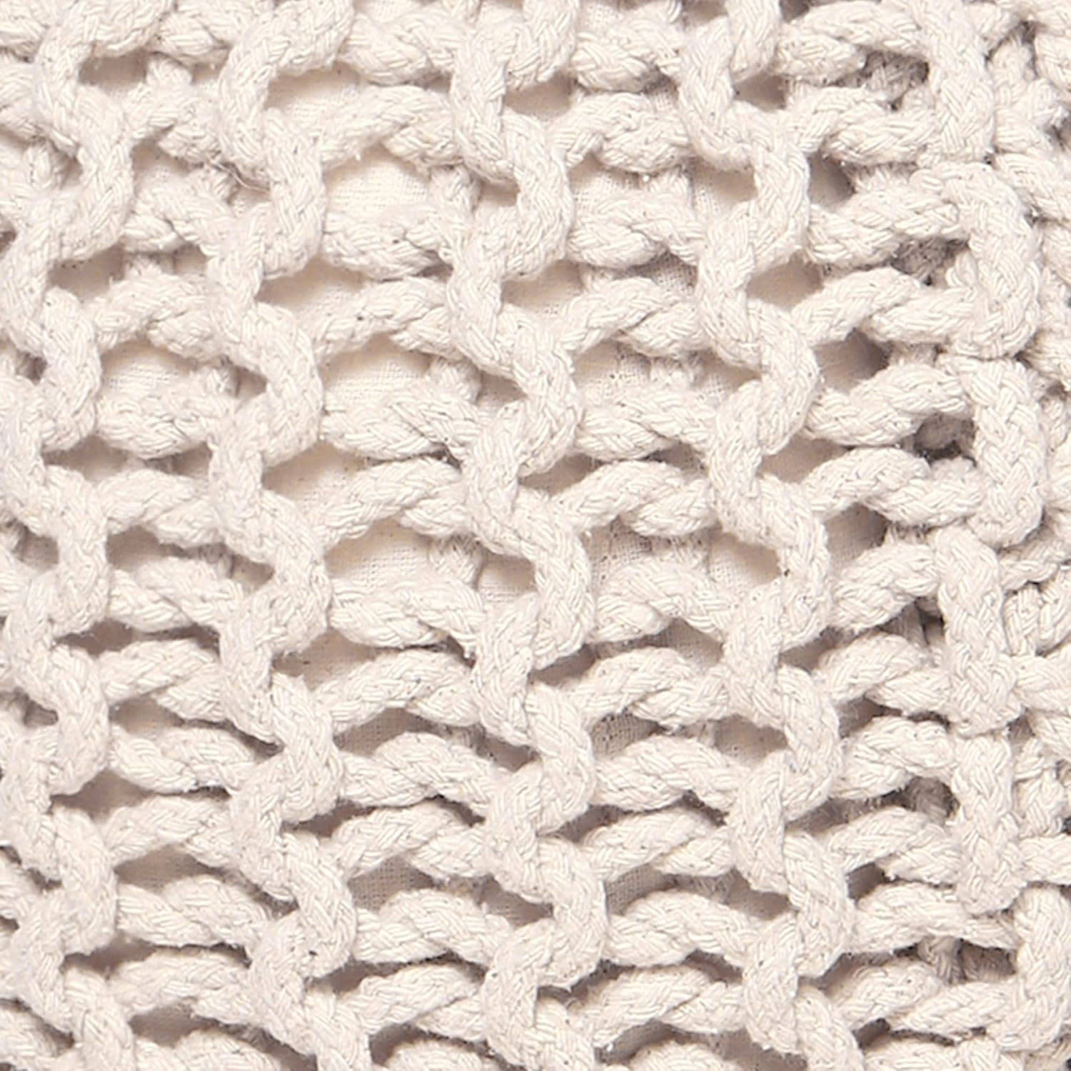 REDEARTH Round Pouf Ottoman - Cable Knitted Boho Poof - Home Décor Cord Pouffe Handmade Circular Footrest for Living Room - Bedroom - Kids Bedroom - 100% Cotton Pouf (19.5"x19.5"x14") - Natural