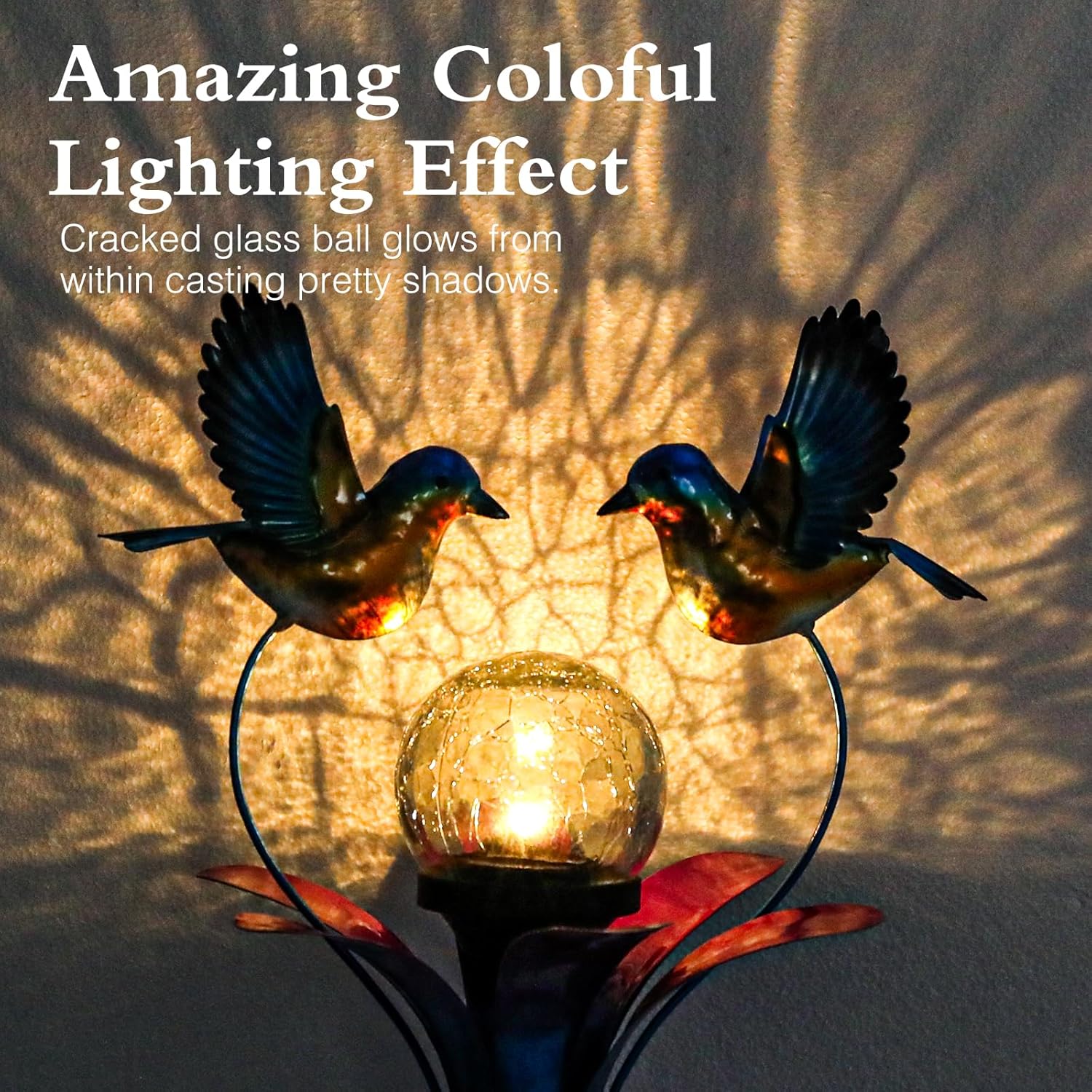 - Bluejay Shape Design - Made of durable and anti-rust painted metal, with a waterproof solar panel and cracked glass lamp. Its weather resistance makes it suitable for outdoors