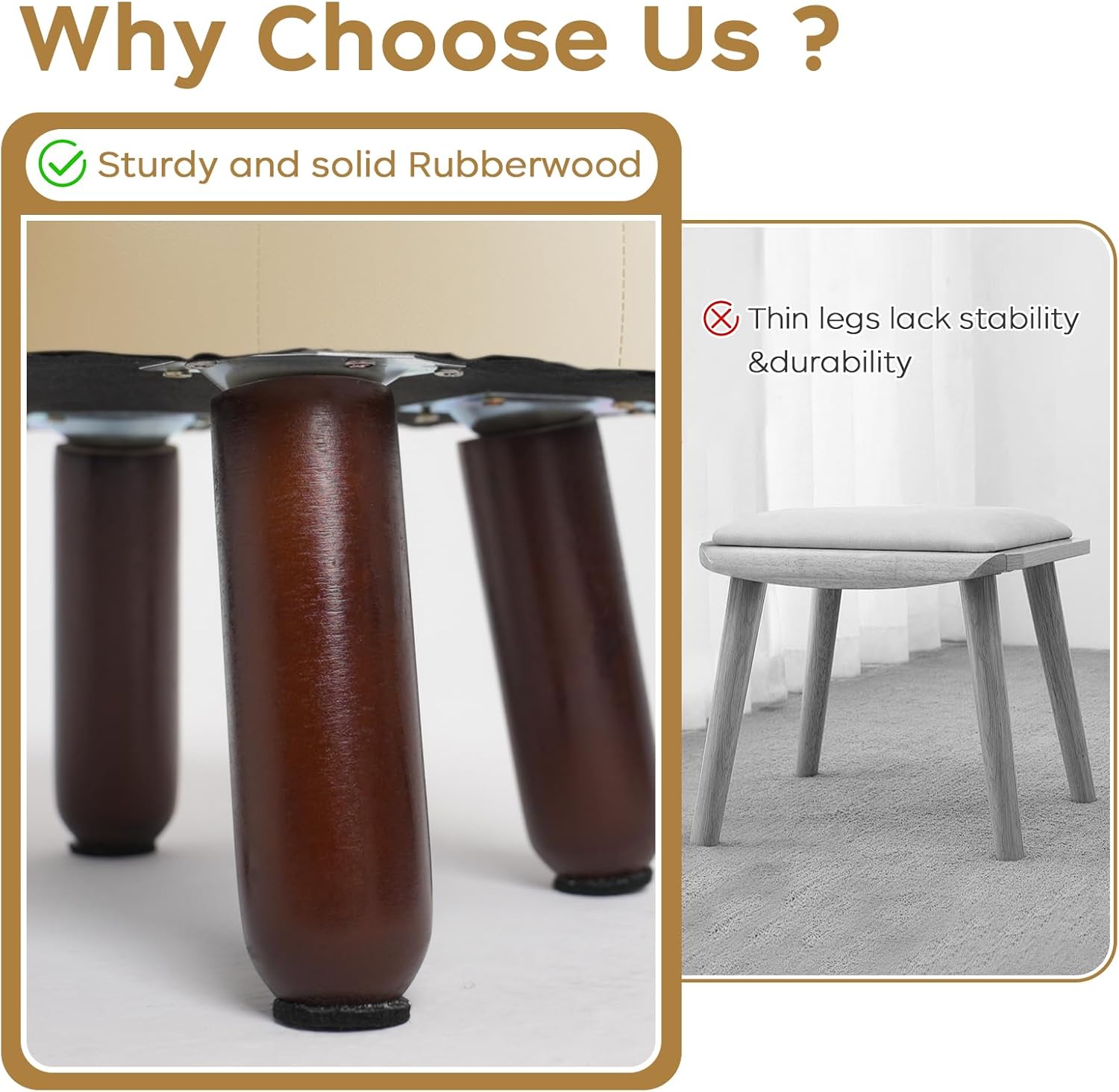 - 【Anti-Slip Design】- These leather foot stools small ottoman rubber legs come with dedicated felt pads to prevent scratches on floor and keep it from sliding.Wood leg with non-slip felt pad is quiet when moving, and can avoid leaving scratches on floor.The small footstool is perfect for small spaces and is compact enough not to get in anyone's way.