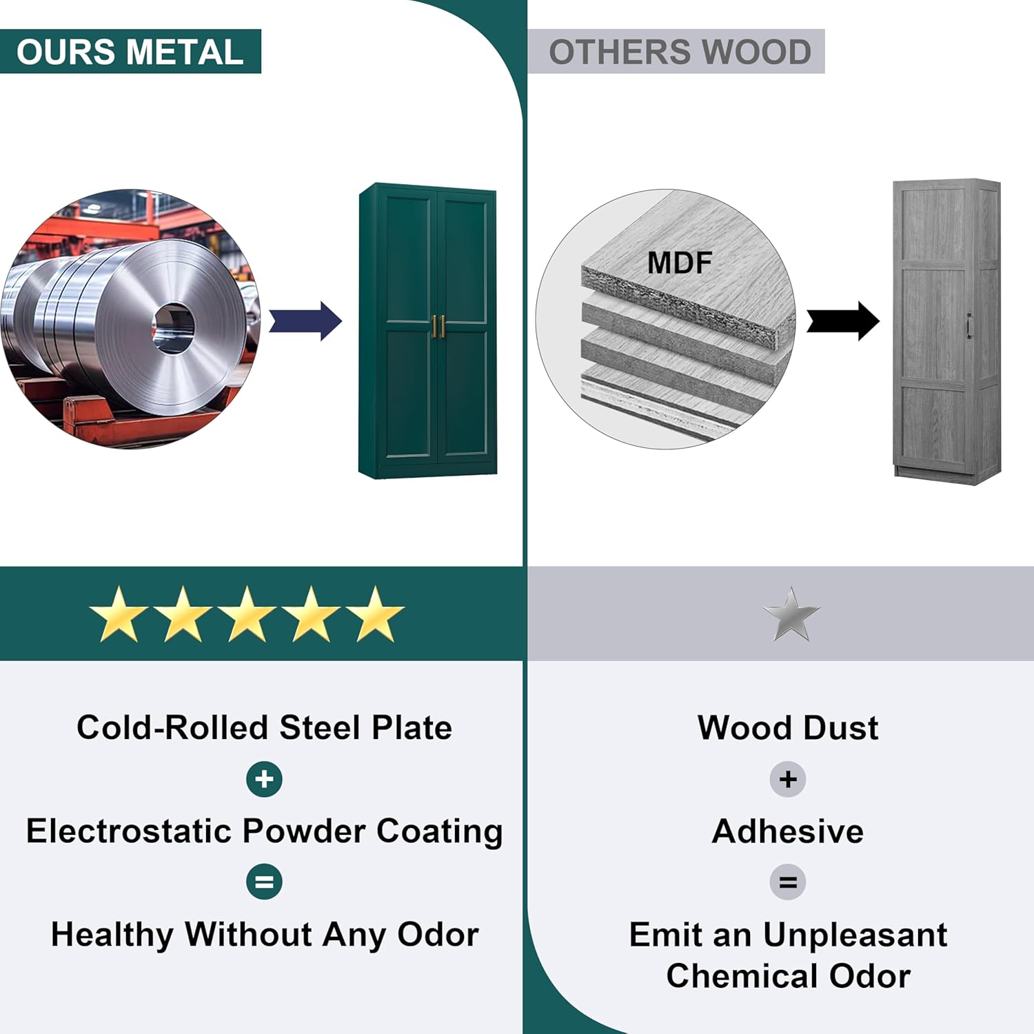 - MATERIAL: The kitchen food storage cabinet is crafted from cold-rolled steel plate(SPCC), ensuring it is sturdy and durable. Steel plates are covered with an environmentally friendly powder coating. Compared to traditional wooden or plastic cabinets, UNICOLY kitchen food storage cabinets are corrosion-resistant, easy to clean, and odourless