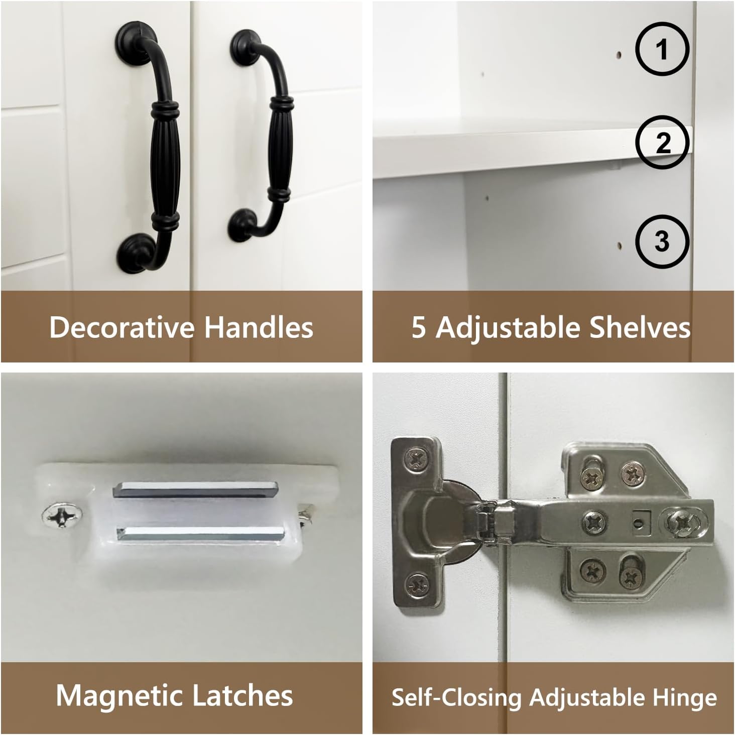- High-quality Material: The kitchen pantry storage cabinet adopts MFC Material. The thickness of the 15mm sheet material has sufficient hardness and durability. The surface is waterproof and easy to clean