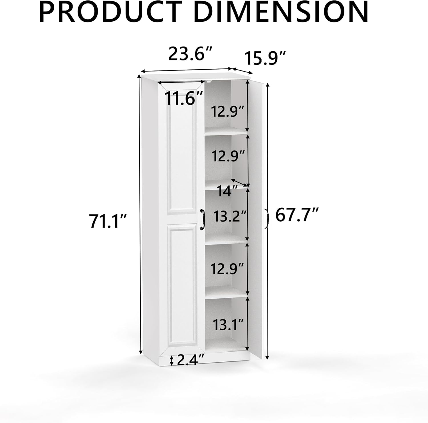 - User-Friendly Installation: 71" H×23.6"W×15.7" D. With detailed assembly instructions and video tutorials included, setting up this kitchen storage cabinet is a breeze. The cabinet has a reliable anti-tipping mechanism to ensure enhanced safety and prevent potential dangers, It is friendly to children and pets