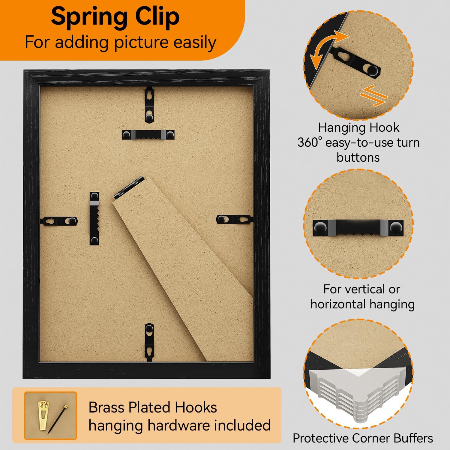 - VERSATILE DISPLAY: Sturdy backboard and versatile hooks allow for horizontal or vertical placement, whether decorating a desk or hanging on a living room wall, it creates a cozy atmosphere. Our natural oak poster frames to display your pictures, posters, diplomas and crafts for a stylish home decor.