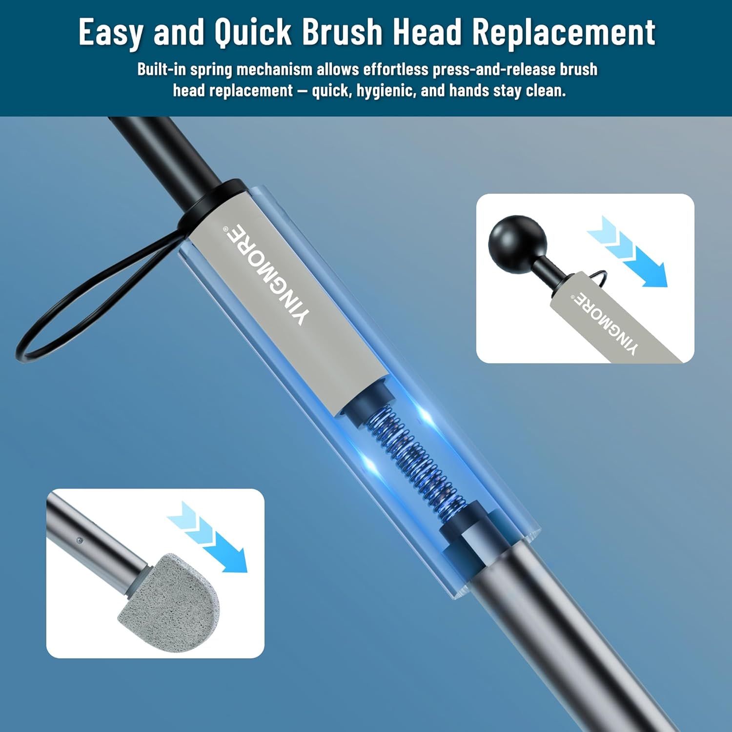 - [Easy Attach/Disposal]---The disposable toilet brush refills easily attach,and eject for disposal by simply pushing the sphere at the top of the handle.