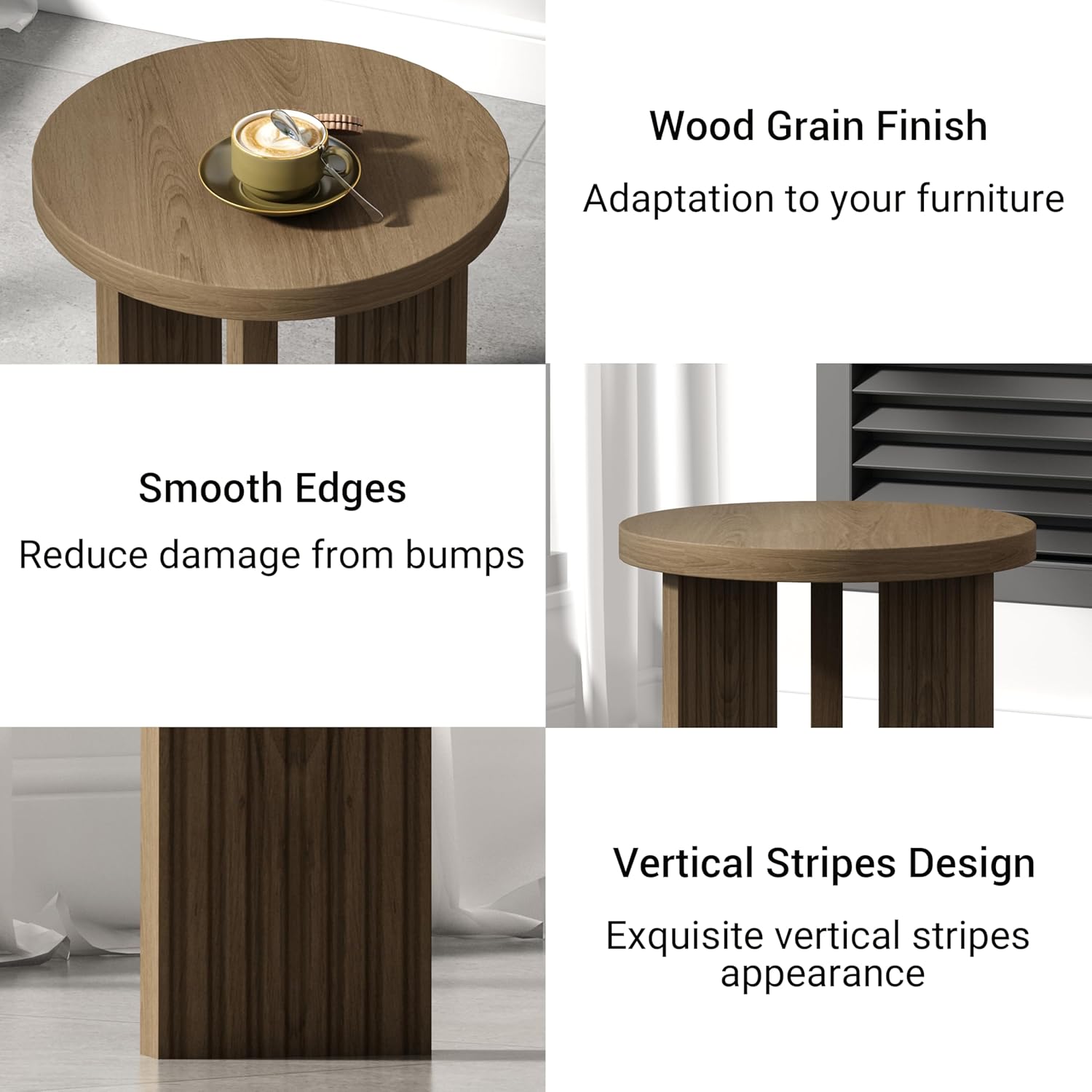 - Simple Style Round Table: The coffee table set of 2 features a solid wood tabletop and thick legs for a sophisticated look and durability. Our small round coffee table set has a sleek and modern design, the tabletop is round in design, and the overall construction is simple, exuding a modern style, which is perfect for precious family gatherings and creating pleasant moments.